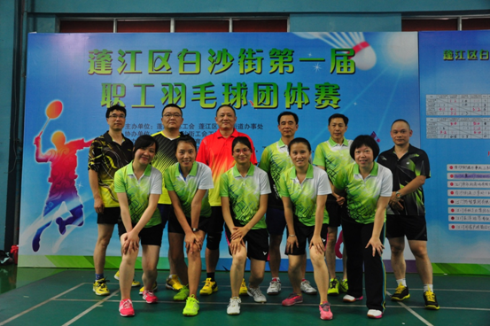 2017年5月13日在江门市益健羽毛球馆举行2017白沙街第一届职工运动会羽毛球团体赛,共15支代表队展开了激烈角逐,公司代表队凭借全体队员的顽强斗志,一路过关斩将,经过5轮淘汰激战,最终勇夺男女子混合团体赛季军。
