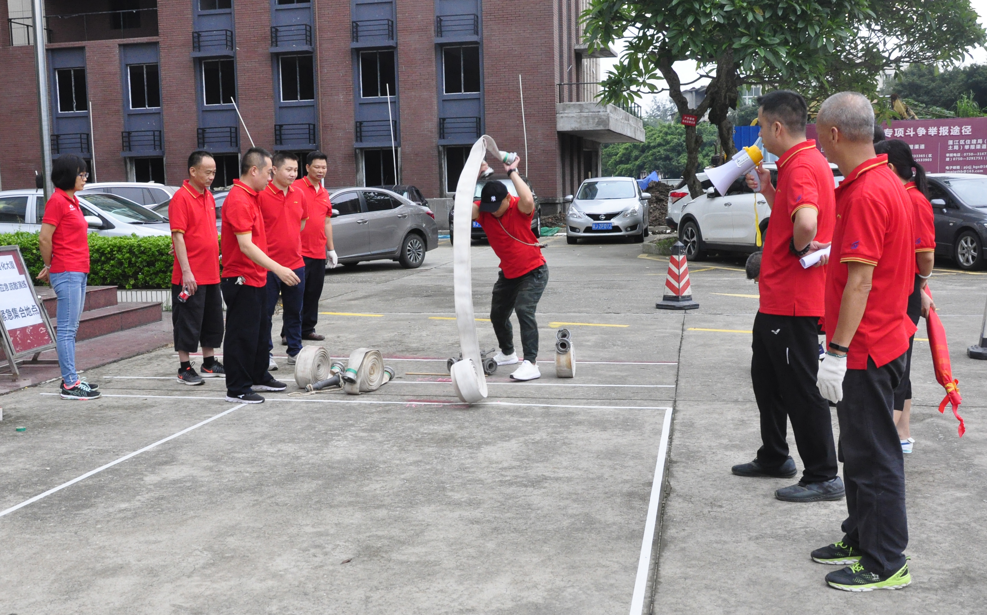 为搞好这次活动,公司成立了竞赛领导小组,由工会主席方小潮任组长,行政总监张琛任副组长。这次竞赛包括两盘水带连接、定点灭火、安全疏散、安全知识竞赛等四个项目。每个项目每队选派3名员工参加,每个项目得分计入团体总分,所有项目积分的总和为最终成绩,根据积分高低决出名次。赛前,工作人员对比赛步骤和一些注意事项进行了讲解和演示。