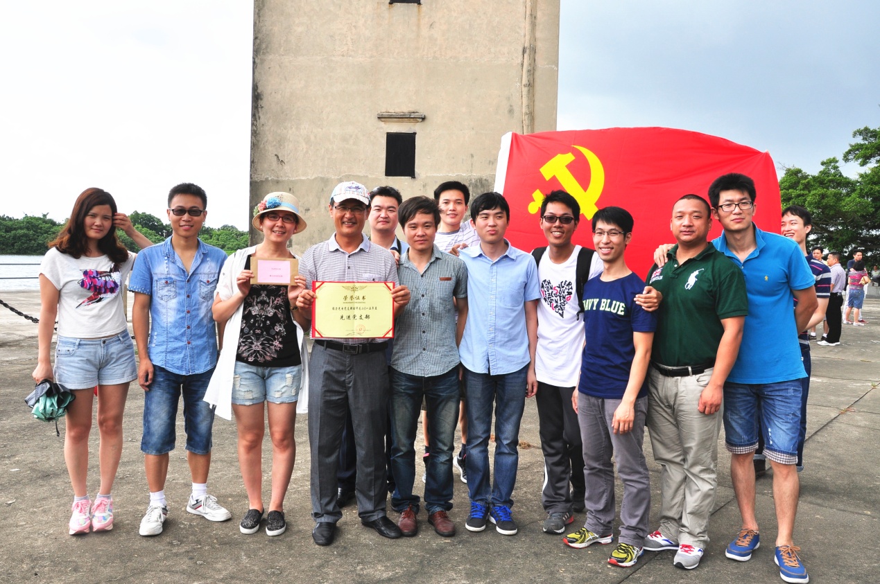 参观当天,艳阳高照,在欢声笑语的旅游车上,建党纪念活动首先在热烈的党史知识有奖问答竞赛拉开了帷幕。当答题告罄,奖品纷纷易主时,汽车就抵达开平南楼。该楼建于1921年,楼高七层19米,每层均有机枪和探照灯,是司徒氏人为防盗贼而建。抗战时期,七名归侨及侨属青年曾在此坚守八天九夜痛击日军,最后弹尽粮绝,壮士全部捐躯。七壮士雕塑雄壮威武,英灵如塔,蓝天之下,民族精神直冲云霄。我们就在当年这一浴血奋战的所在默默地缅怀,庄重地对获得2015年度先进党支部和优秀党员进行表彰,展开鲜艳的党旗合影……过程中,我们几乎听到烈士群像的呼吸。