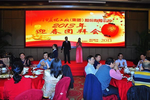 紧接着,在热烈的掌声祝福中,甘化公司董事长兼总裁麦庆华先生以及各公司高管进行颁奖,对股份公司及德力光电的优秀员工、生物中心的先进管理者和先进工作者进行表彰。然后,公司领导集体上台敬酒。随着礼炮响亮地鸣放,万众期待的团拜晚宴正式开始了!