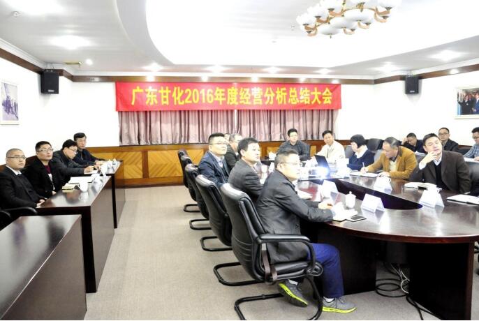 2017年1月23日下午,在甘化大厦15楼会议室,公司召开了广东甘化2016年度工作总结大会,会议由公司总裁施永晨主持。公司本部高管人员和子公司经营班子成员等20余人参加了会议。