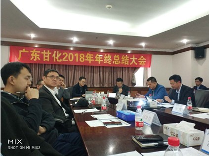 2019年1月25日,广东甘化召开2018年年终总结大会,总结部署2018、 2019年工作。会场设在江门,公司经营班子成员、中层干部、子公司沈阳含能和四川升华高管共计30人参加了此次会议。会议由公司企管部总监张琛主持。