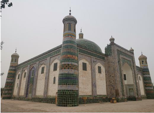 【香妃墓是一座典型的伊斯兰古建筑群,也是伊斯兰教圣裔的陵墓,传说埋葬在这里的霍加后裔中,有一个叫伊帕尔汗的女子,是乾隆皇帝的爱妃,由于她身上散发着一股奇特的沙枣花香味道,人们便称她为“香妃”。】