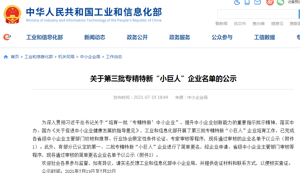 国家级专精特新“小巨人”企业作为“专精特新”中小企业中的“排头兵”,需要企业有着过硬实力,上榜企业必须长期专注并深耕产业链某一环节或某一产品,企业主导产品在国内细分行业中拥有较高的市场份额,并在研发设计、生产技术、市场营销、工艺及产品质量性能、内部管理等方面不断创新提升,使自身具有良好的示范推广价值。因此,能够上榜这一名单的企业都是全国中小企业中的强者,具有创新能力强、市场竞争优势突出等特点。