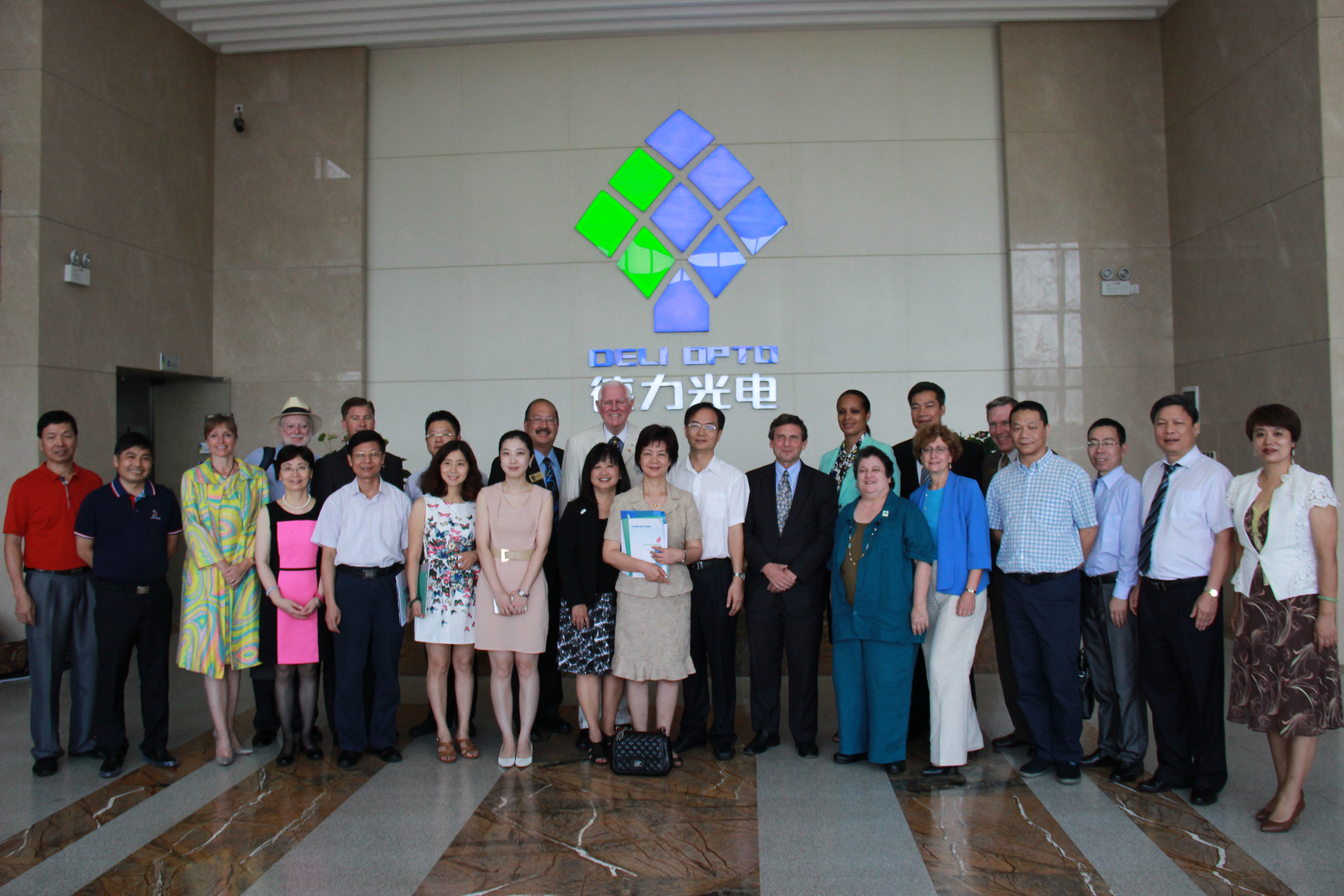 参观结束后,访问团与市领导及公司领导在德力光电大堂亲切合影留念。